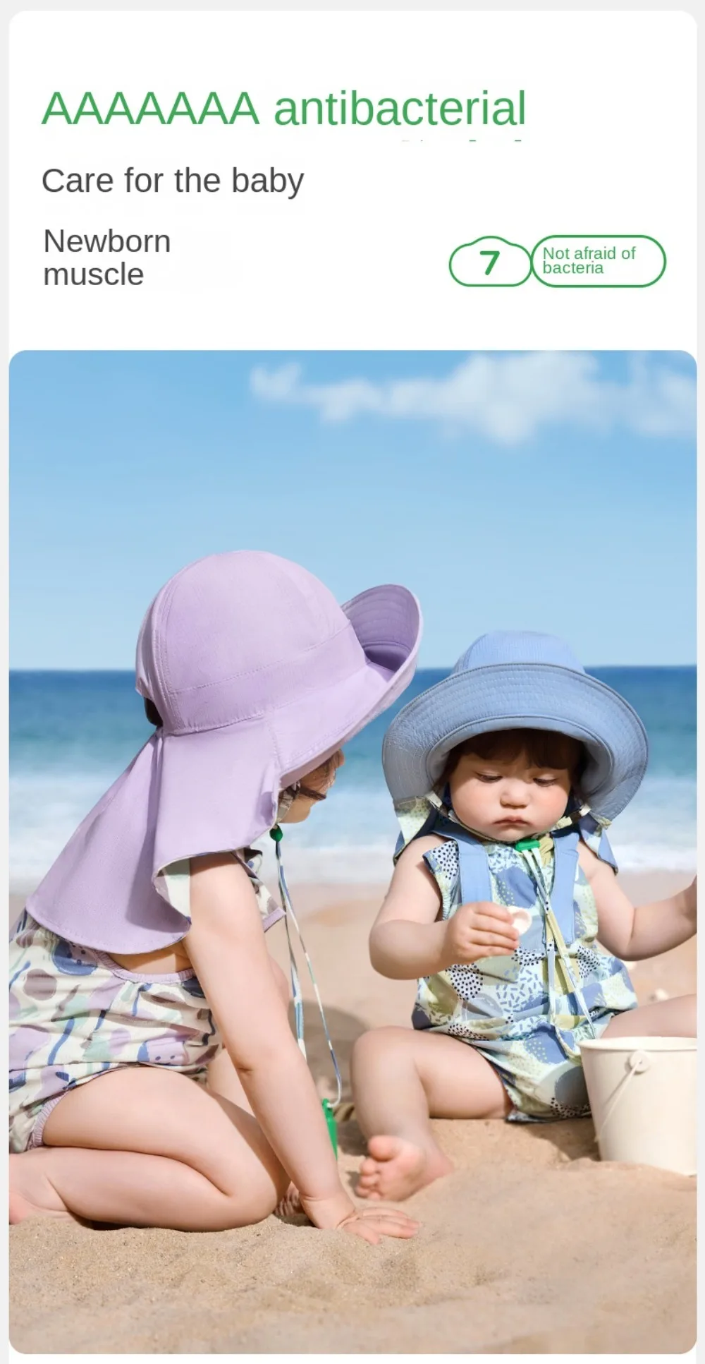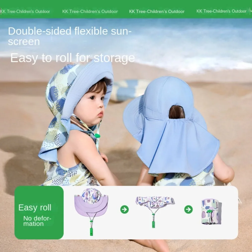 Comfortable Korean Style Double Sided Kid Sunhat Cotton Large Brim Sand Beach Sun Hat UPF 50+ Adjustable Baby Shading Hat Summer