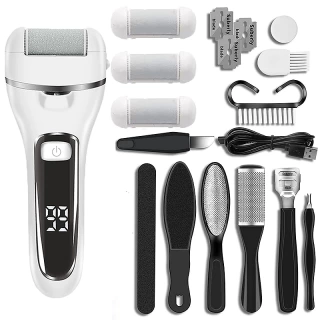 [18 in 1 Foot Callus Remover Set] A perfect set of foot skin care. It includes 3 kinds of roller heads, as well as charger, brush, and other accessories. A complete set of suits provides professional help for your foot maintenance.