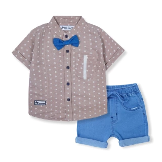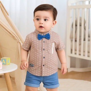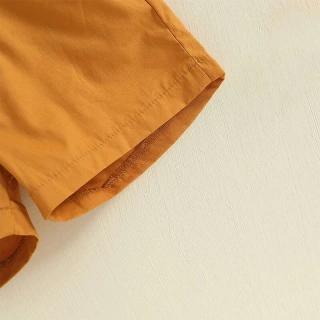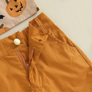 Get your little guy ready for Halloween fun with this festive toddler boy set. The short-sleeve button-up shirt features an all-over pumpkin print with playful bats, candy corn, and spiders for extra charm. A matching bow tie adds a touch of adorable flair, making it perfect for parties or photos. The solid orange shorts come with pockets and a button closure for easy wear. This set is a cute and comfortable choice for celebrating in style.