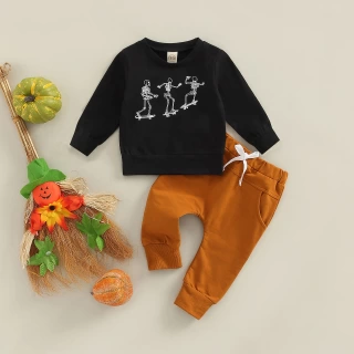 Stay warm this Halloween in the Spooky Skeleton Sweatsuit. With its bone-chilling crewneck sweatshirt and orange and black sweatpants, you'll be the envy of your costume party. This sweatsuit promises a flexible, comfortable fit.