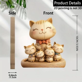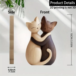 Wooden Kitten Couple Sculpture Charming 2D Flat Cat Enthusiast Gift Light and Dark Wood Grain Desktop Entrance Home Decoration